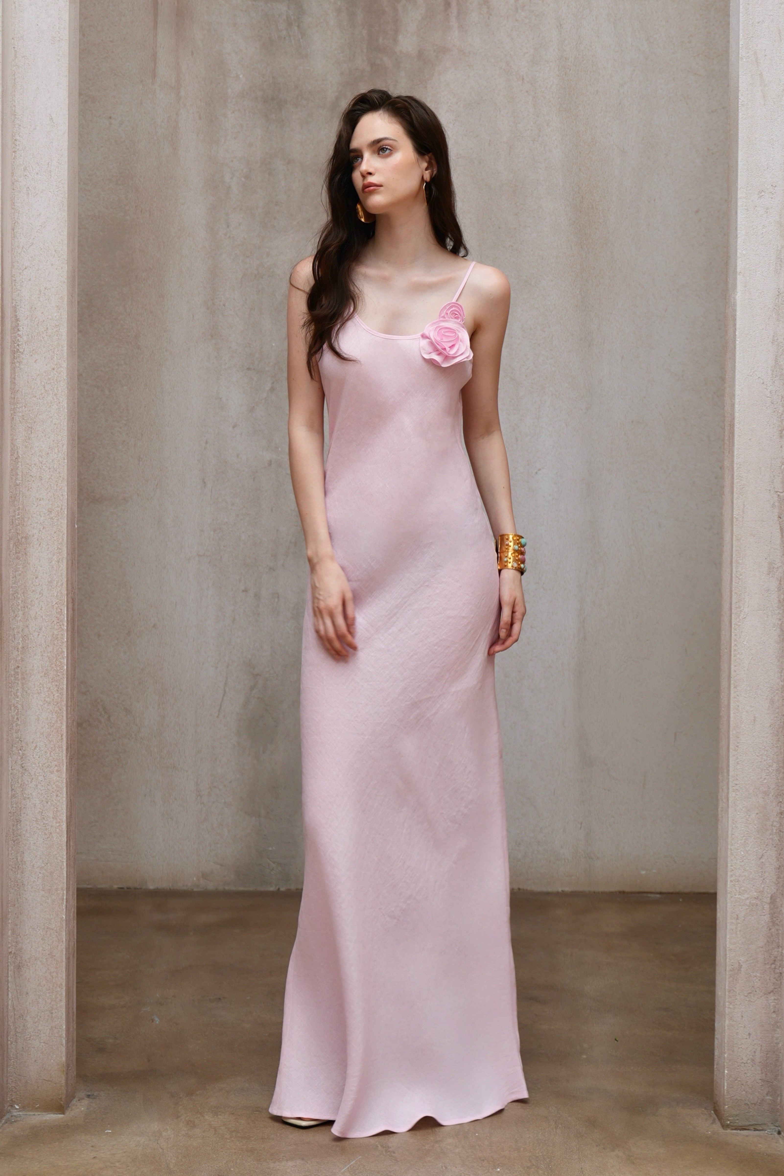Last Sunset Rosette Linen Slip Dress