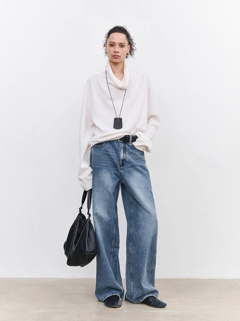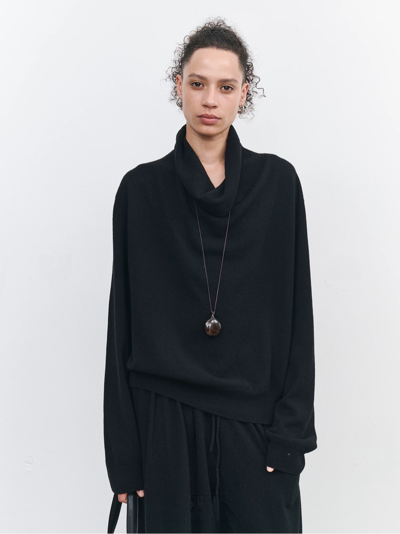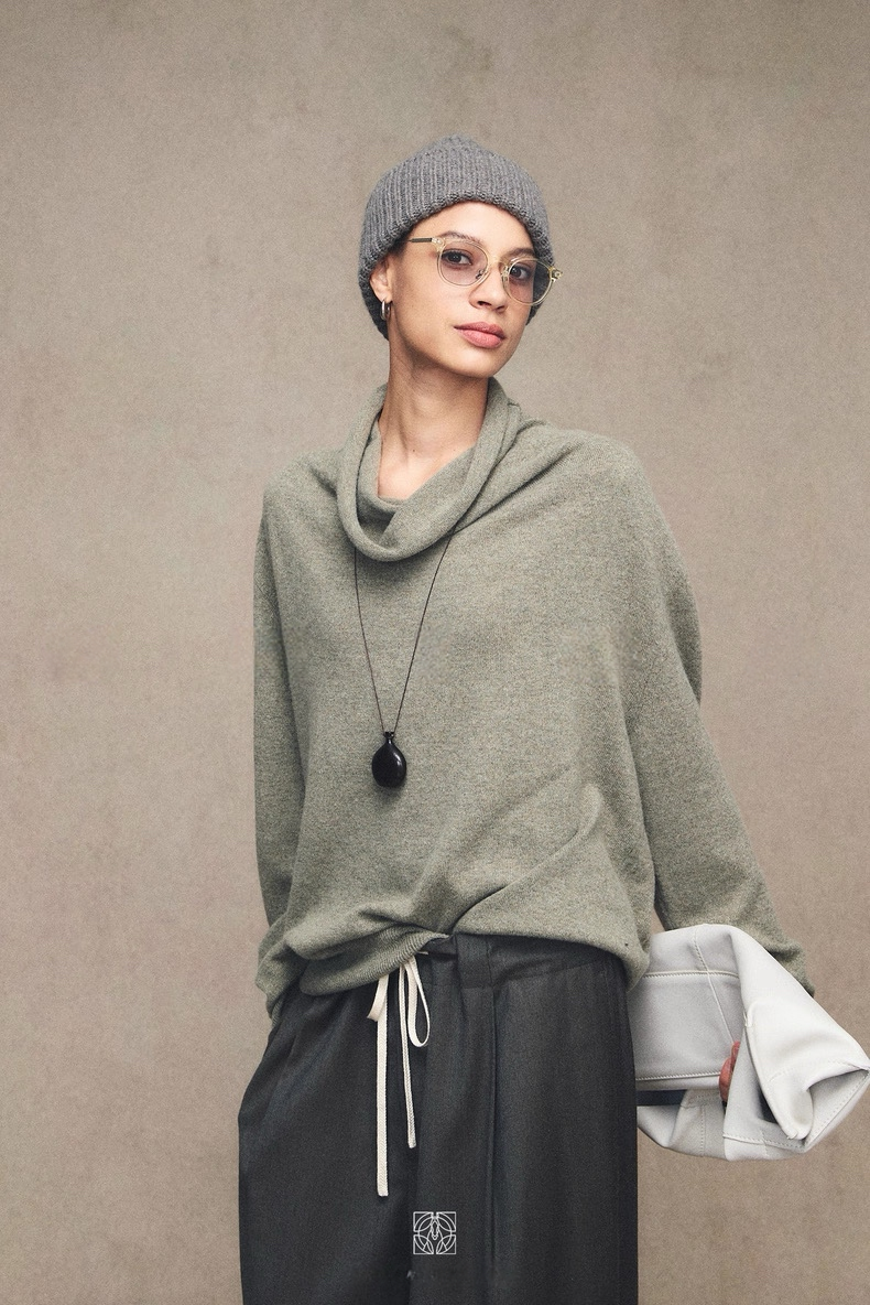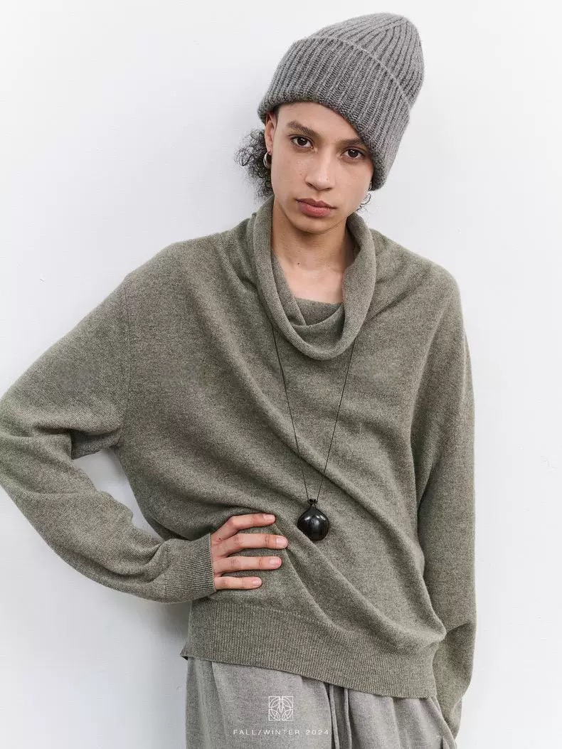 The relaxed oversized silhouette and draped cowl neck design create a flattering, effortless shape, making this cashmere sweater a minimalist essential that never goes out of style.