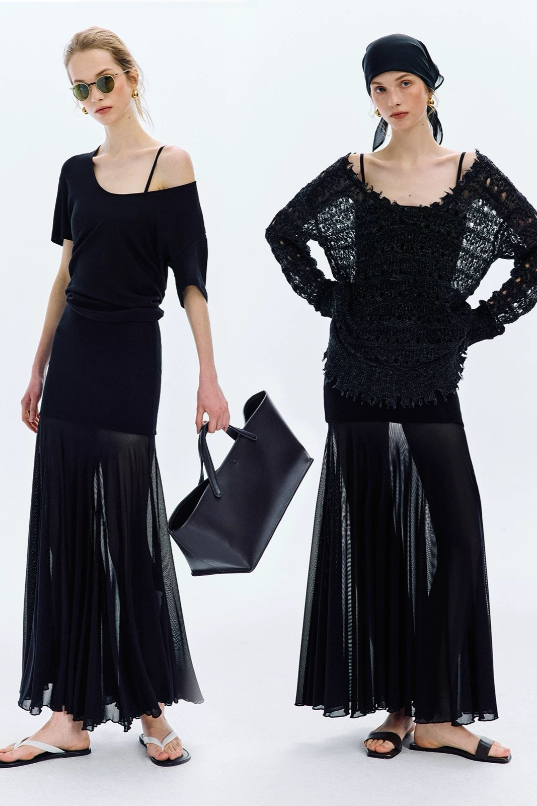 Sheer Elegance Maxi Skirt – Flowing Mesh Layered Long Skirt for Women