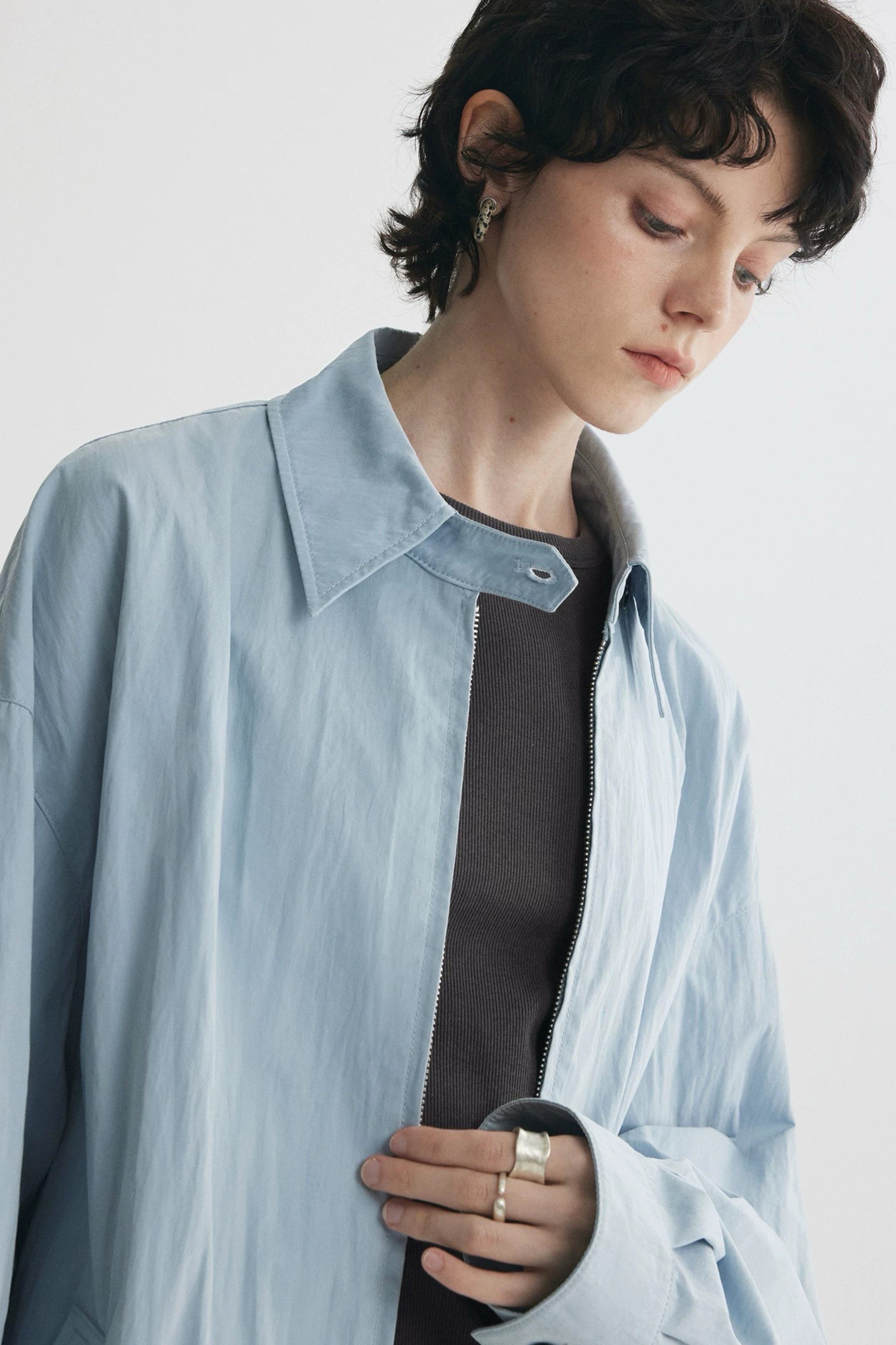 Effortlessly cool and versatile, the Sky Mist Oversized Zip Jacket is designed for modern minimalists who love comfort with style. Crafted in a lightweight fabric with a relaxed silhouette, this jacket offers an easy layering piece for both transitional weather and year-round styling. The soft sky mist blue hue adds a refreshing touch, making it a perfect match for casual streetwear, chic office looks, or weekend outings.