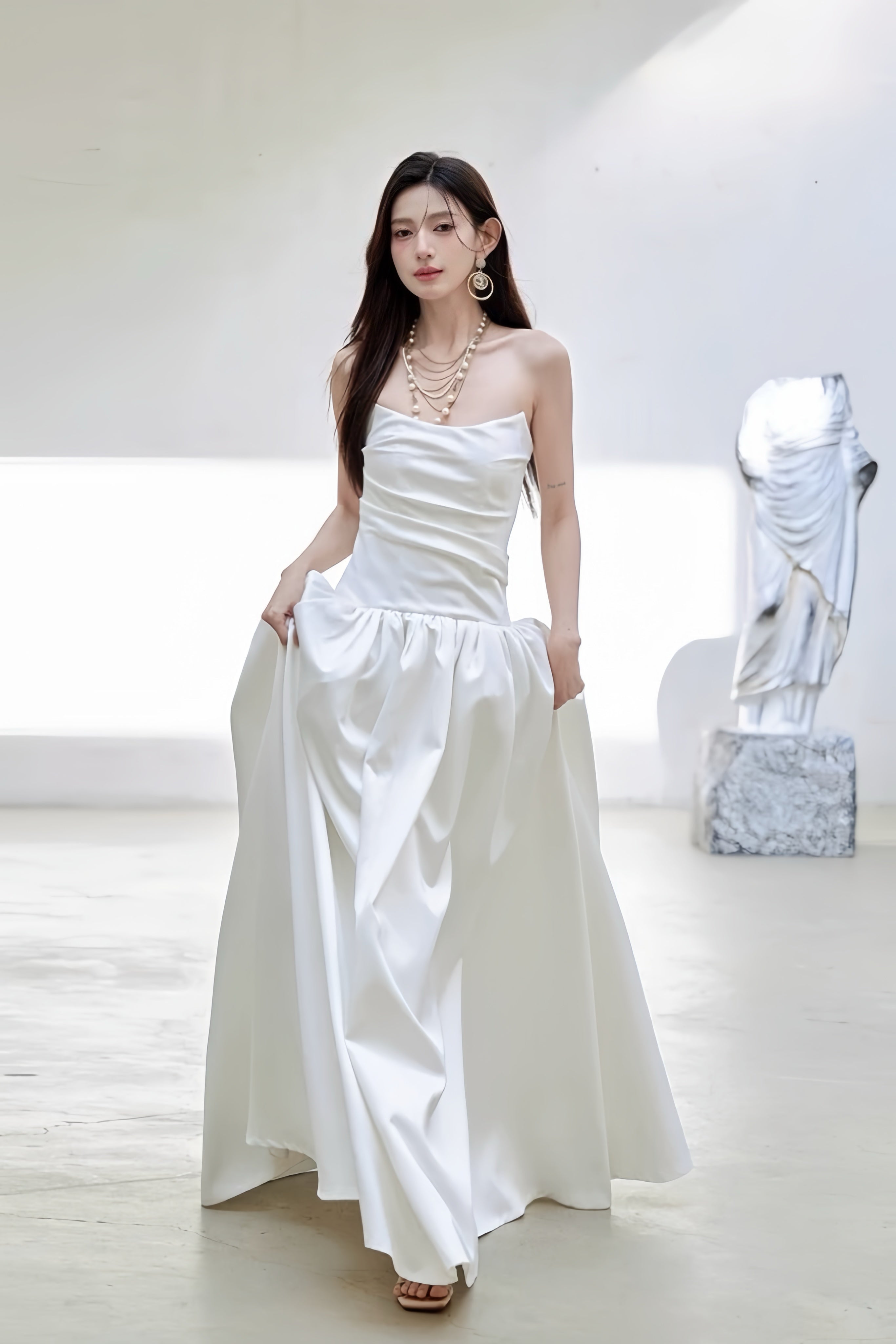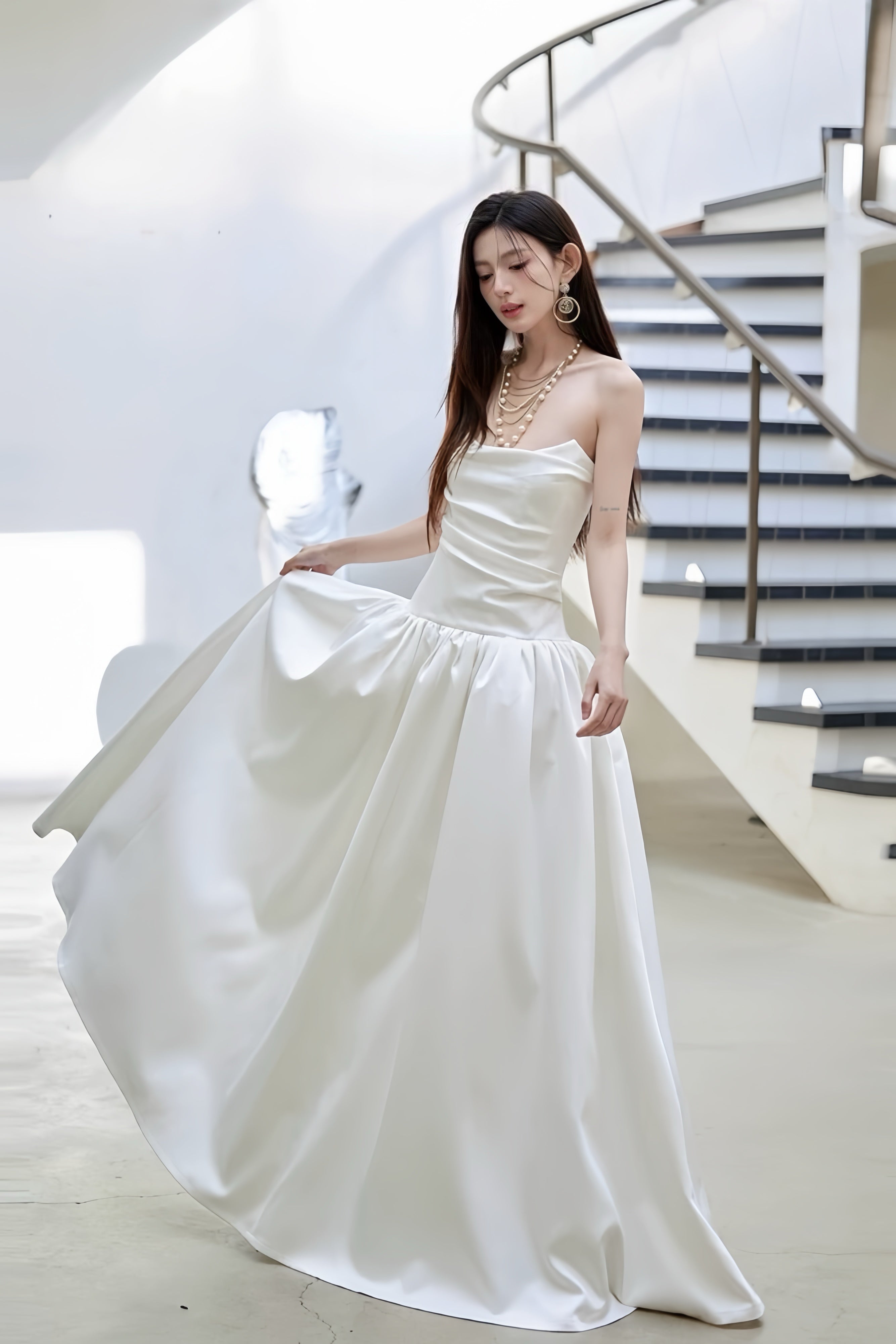 Vogsion "Aurelia" Luxe Heavyweight Satin Basque Waist Bridal Gown | Sculpted Internal Corset Wedding Dress