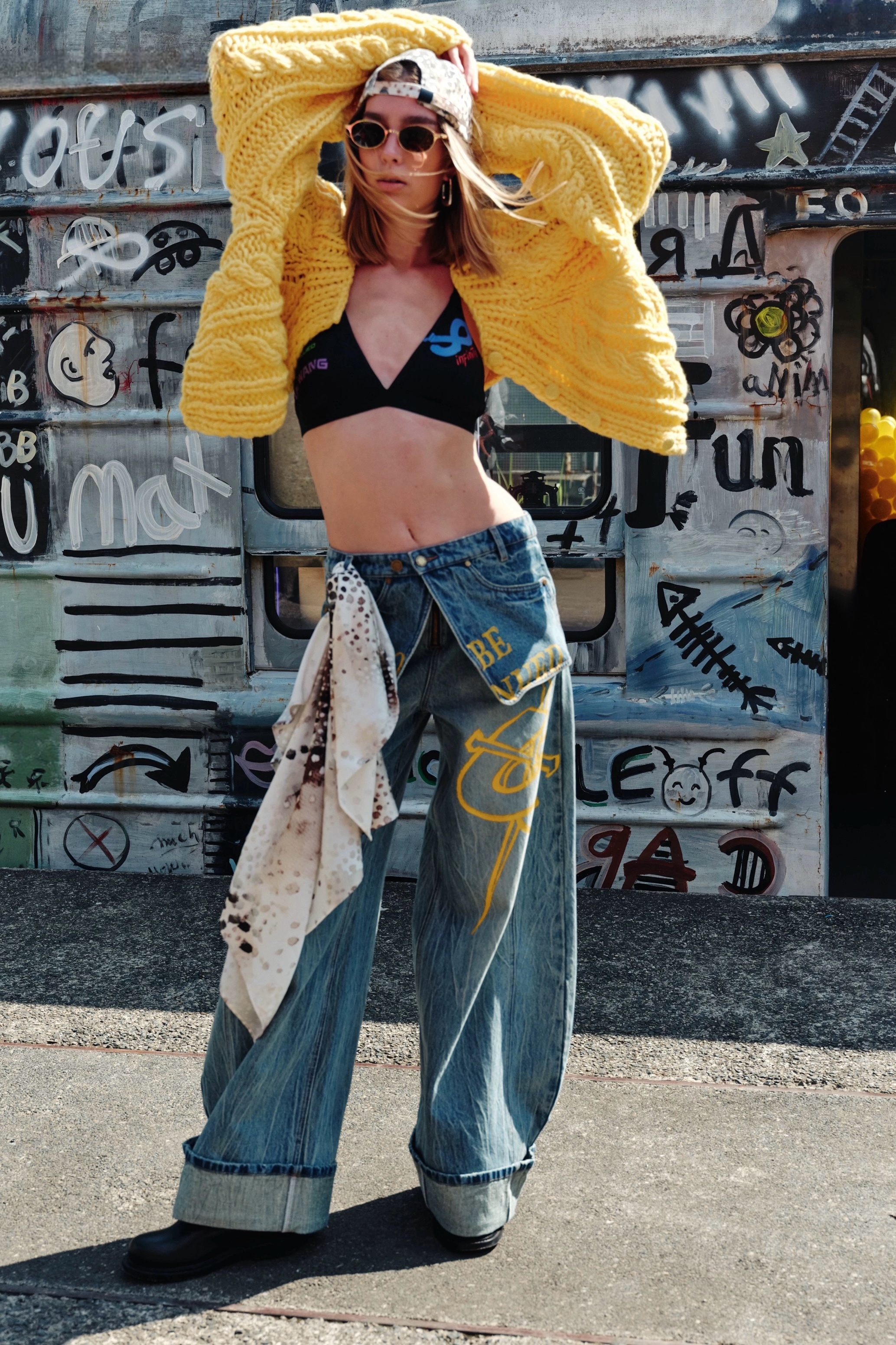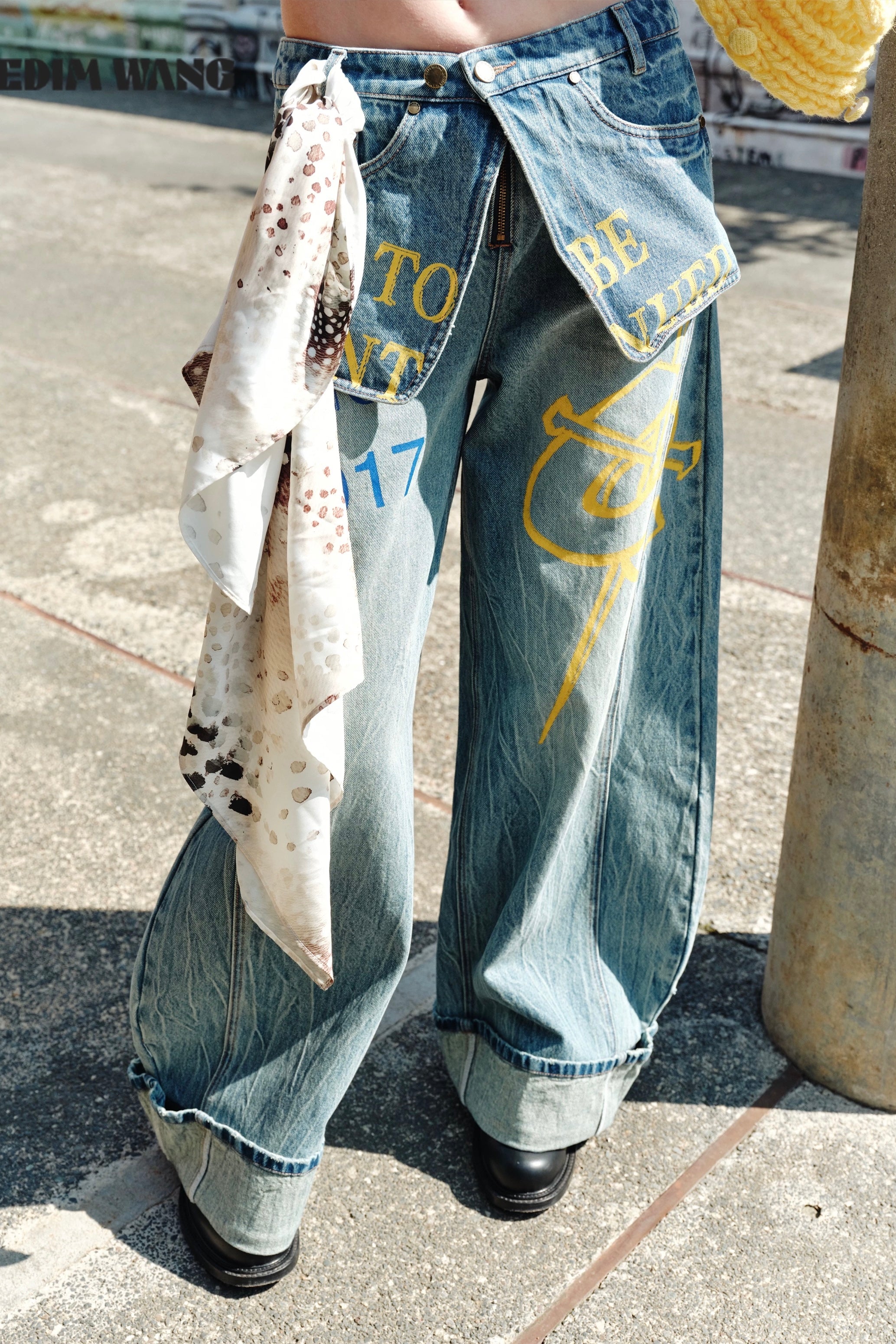 Designed with a relaxed low-rise fit and bold hand-painted lettering, these jeans capture the raw spirit of individuality and freedom.