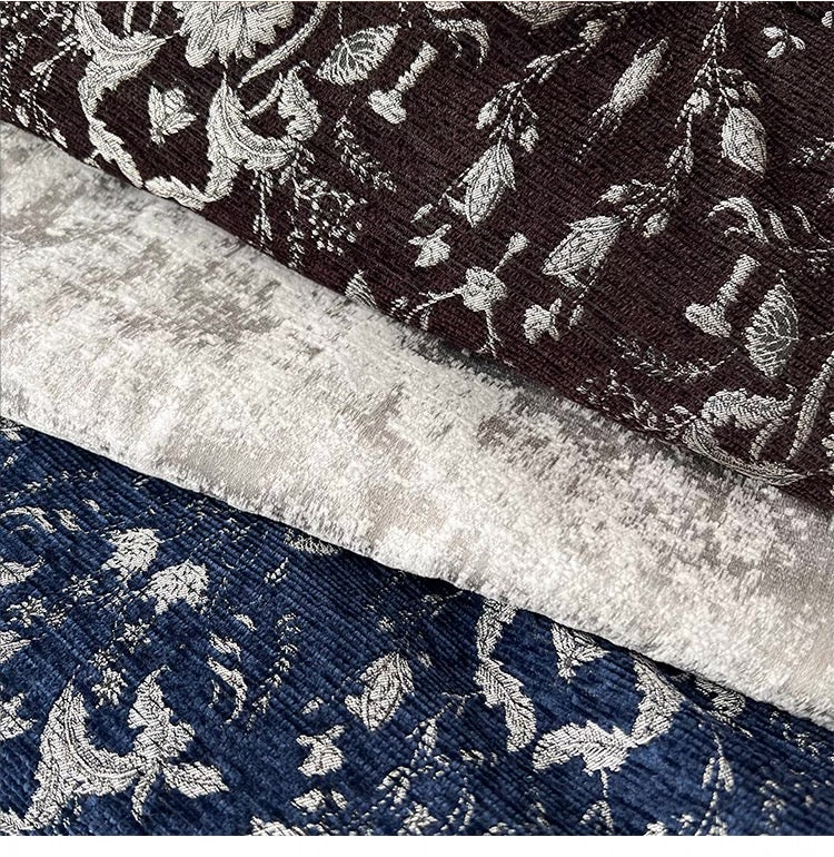 Crafted with intricate blue-and-ivory jacquard, the fabric resembles classic luxury house monograms while showcasing hand-embroidered Chinese motifs—each stitch adding depth, texture, and cultural richness.