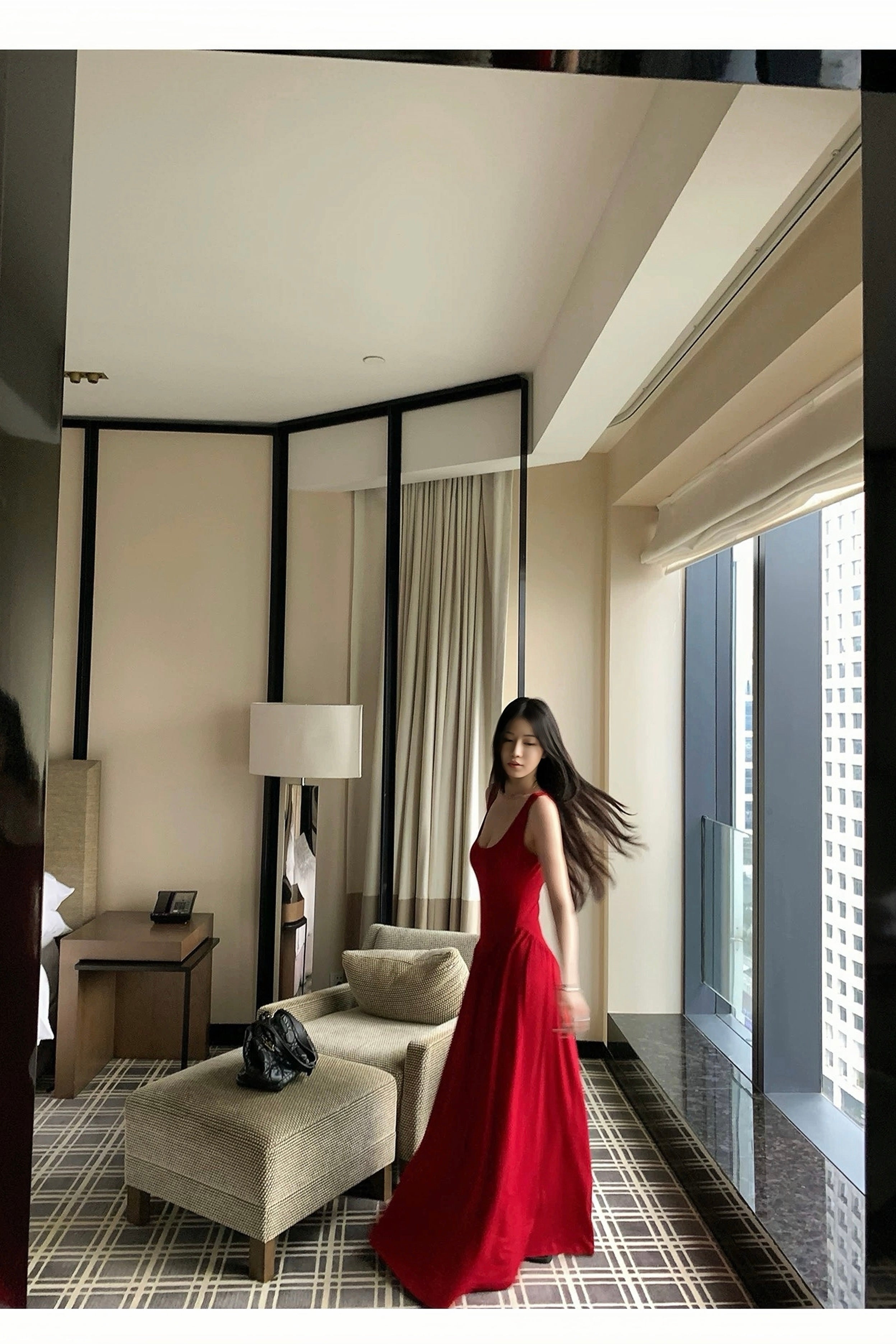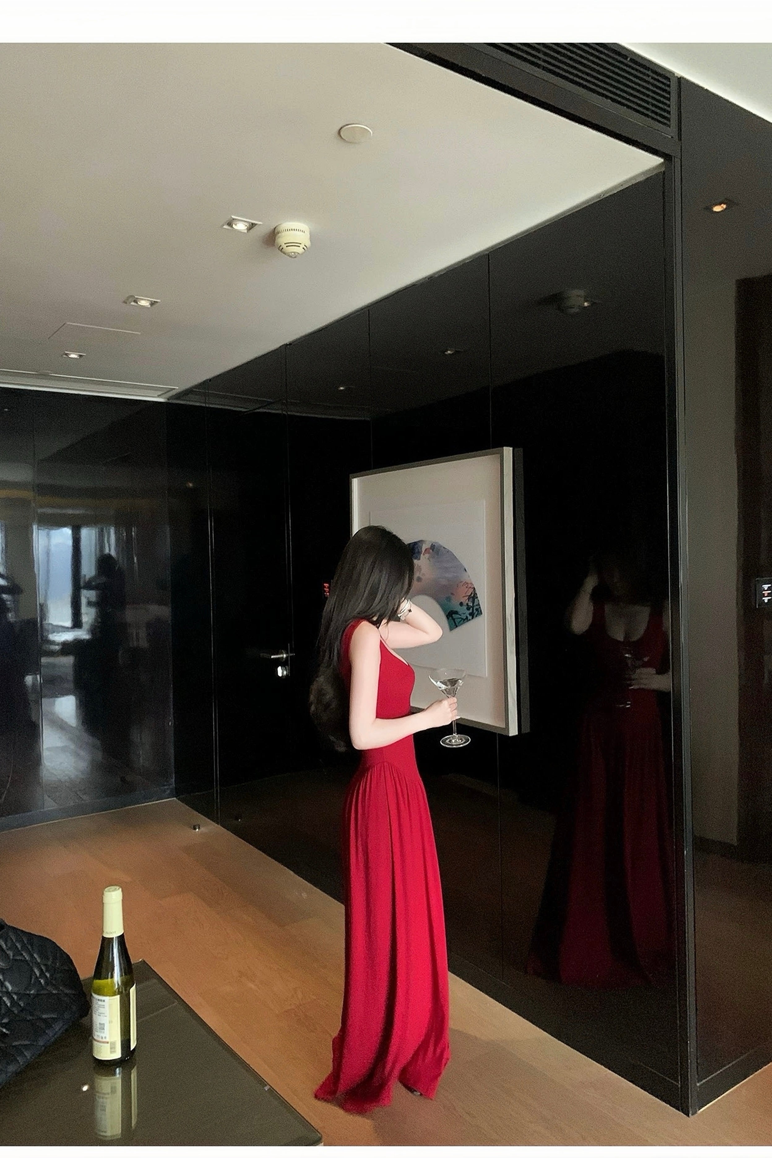 In a deep red that captures both romance and strength, this dress drapes fluidly with every movement, combining modern minimalism with sensual confidence. The sleeveless scoop neckline and high-waisted flowing skirt create a silhouette that’s flattering yet relaxed, perfect for everything from Christmas dinners to New Year’s Eve gatherings.