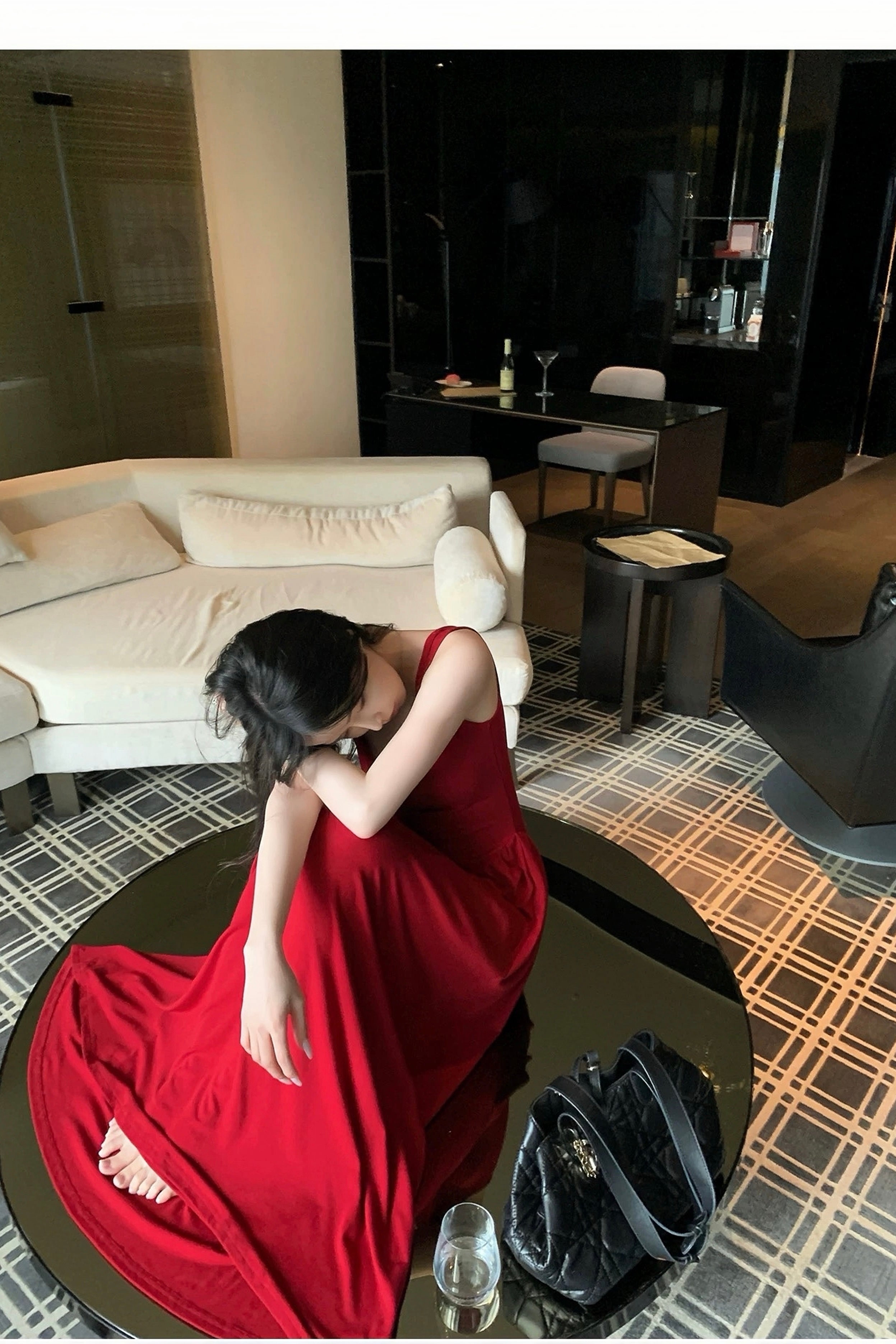 Whether paired with heels and red lips for a formal soirée, or worn barefoot by candlelight at home, this piece radiates understated luxury — the kind that never tries too hard.