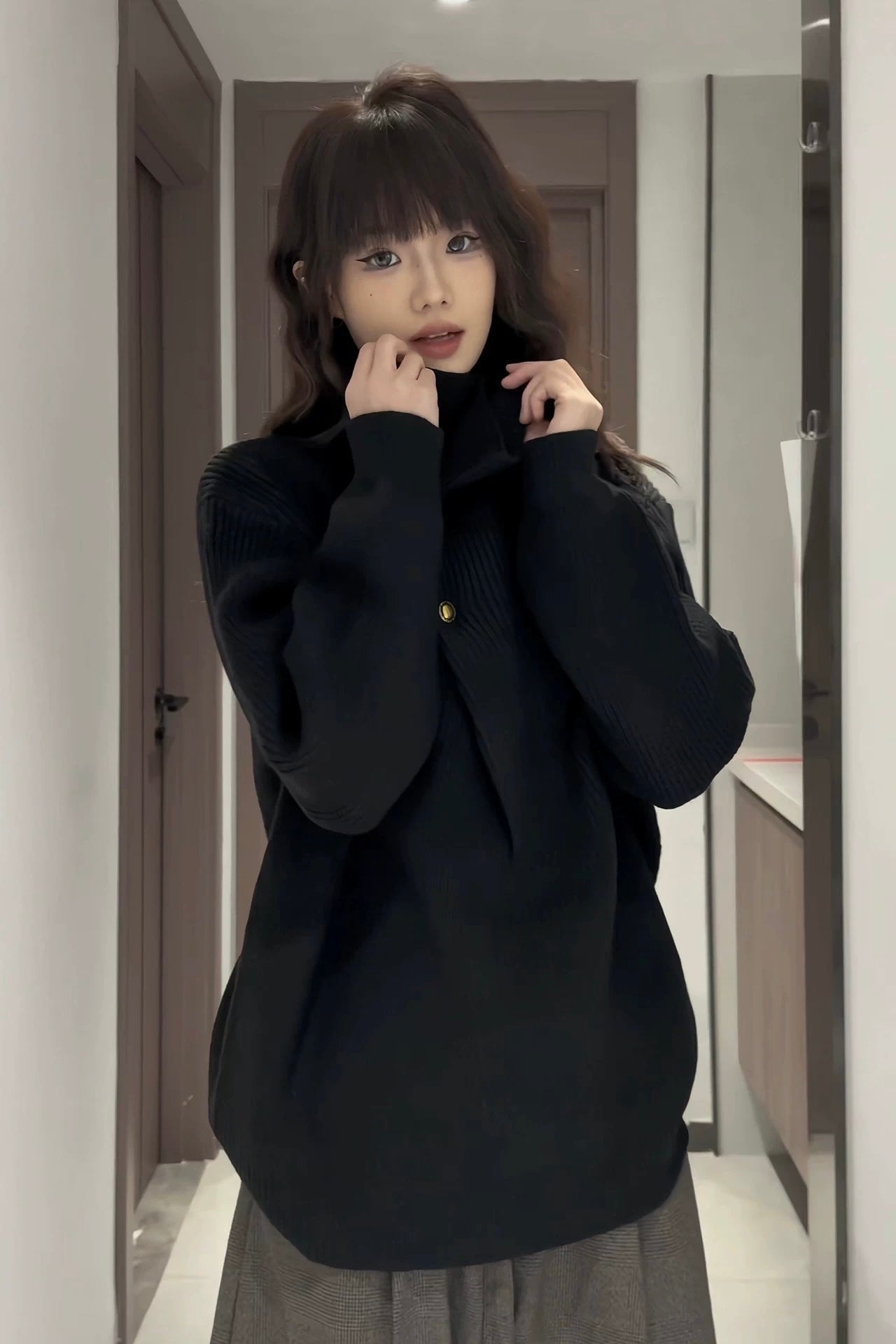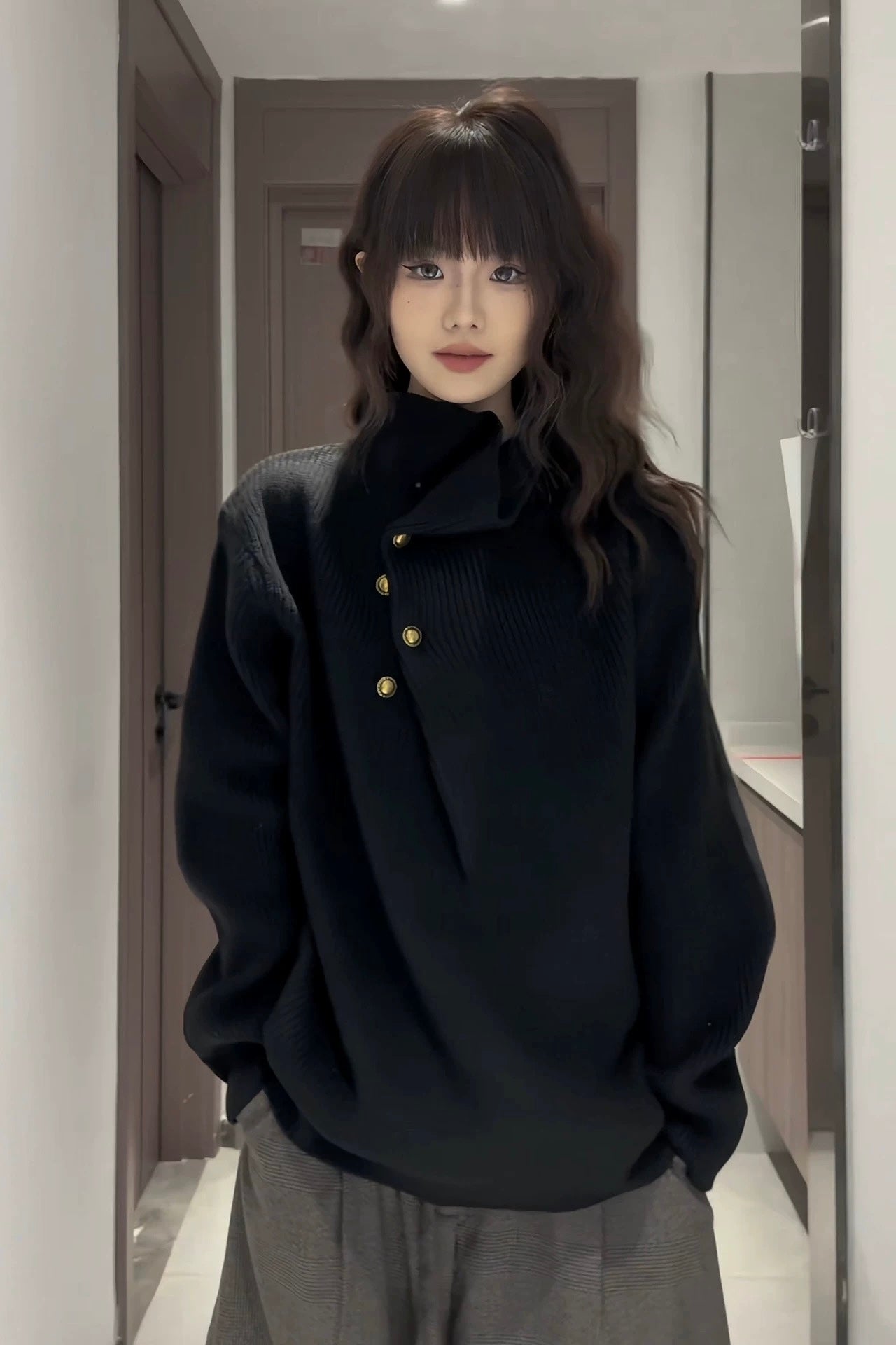 Vogsion Irregular Button High-Neck Knit