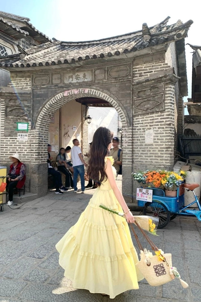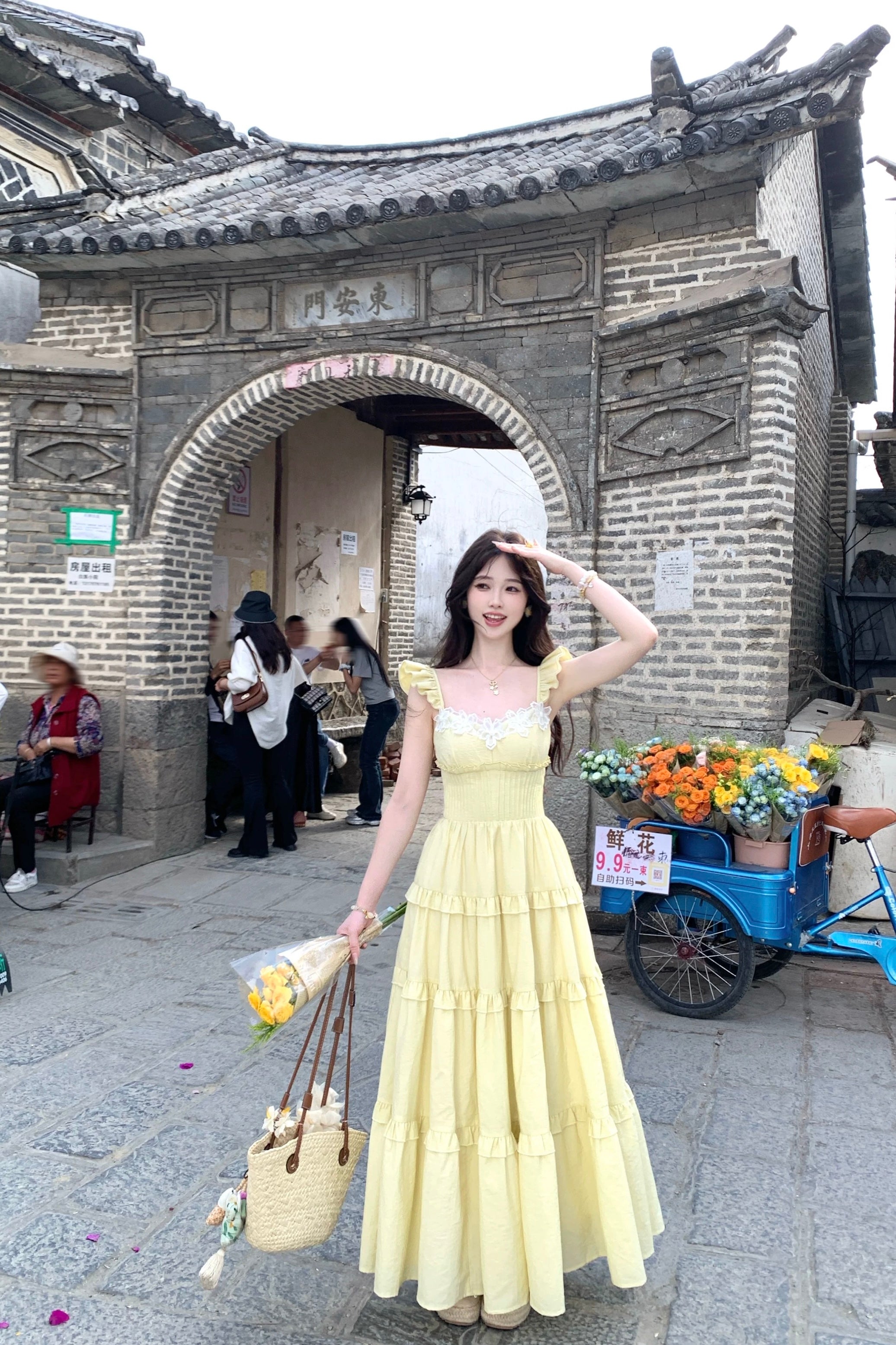 Step into sunshine with our Lemon Bloom Ruffle Maxi Dress — a romantic summer piece that captures the charm of old towns and blooming gardens.