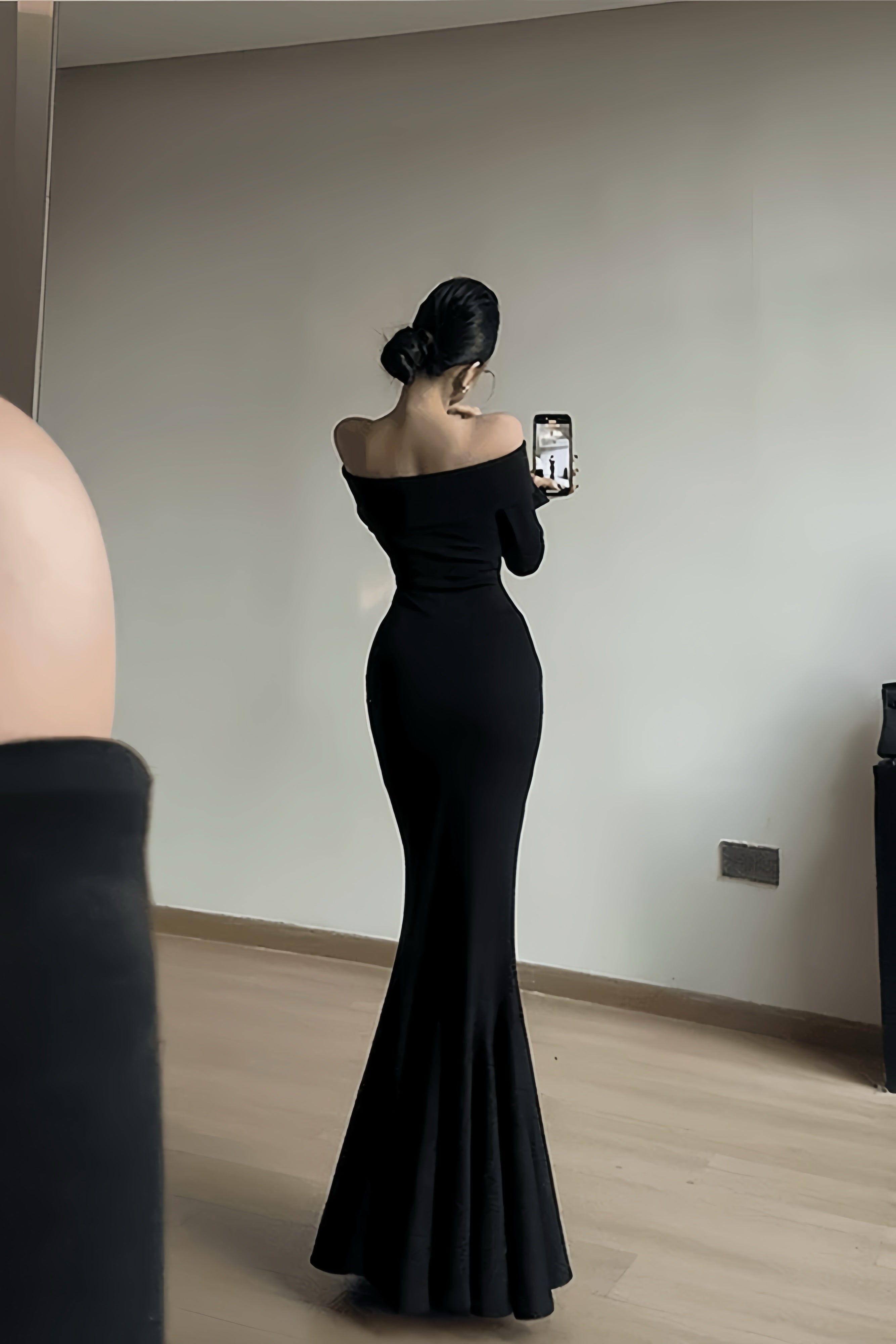 Vogsion Midnight Rose Off-Shoulder Mermaid Maxi Dress