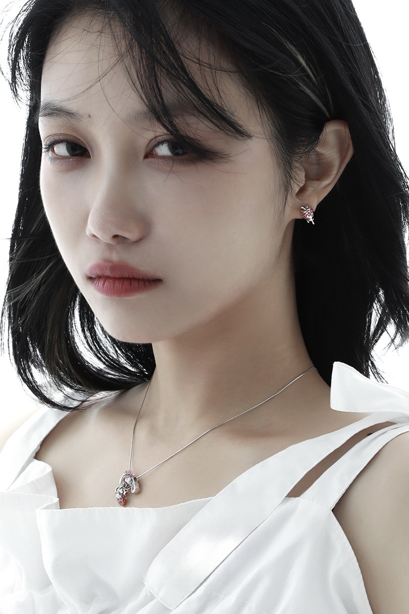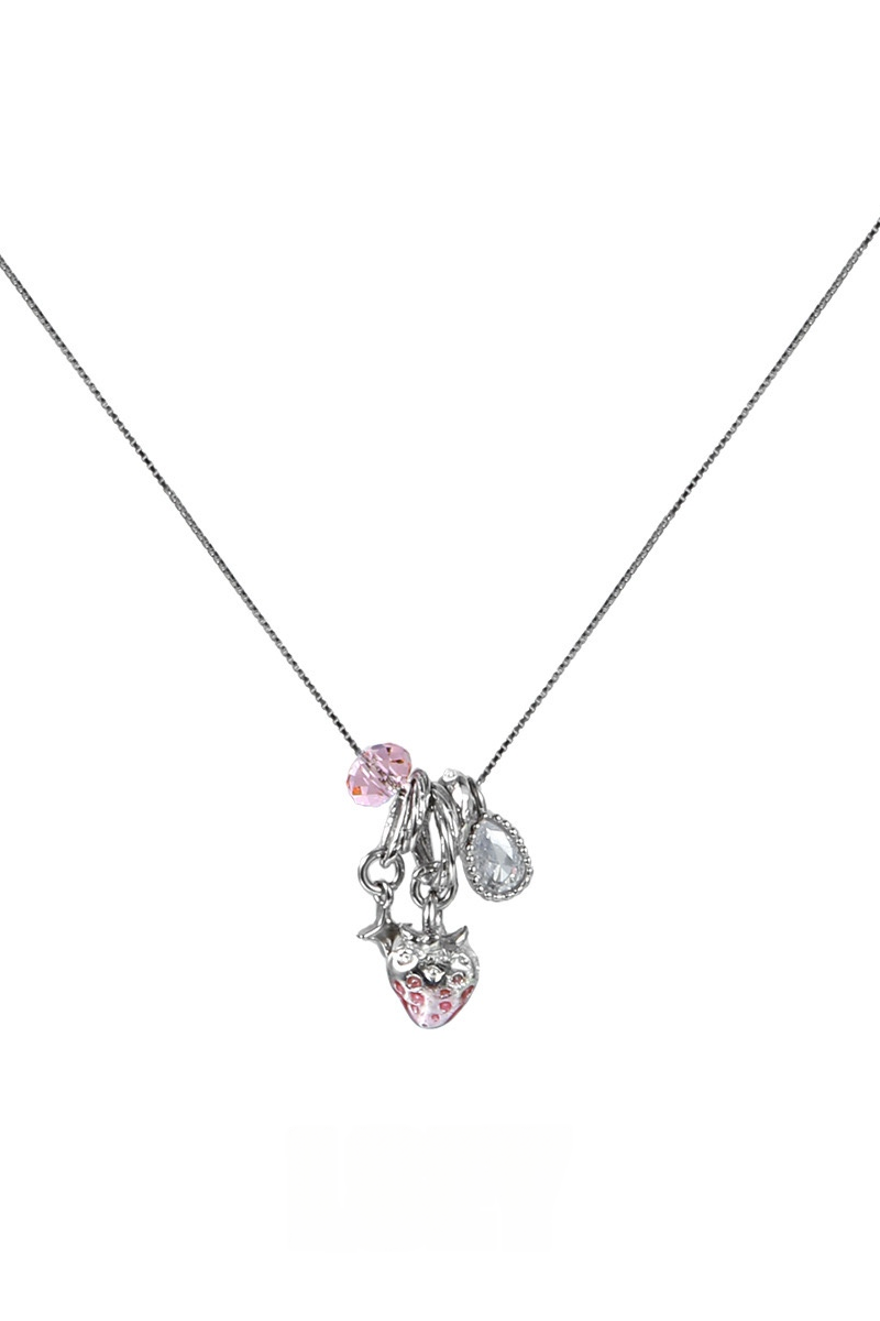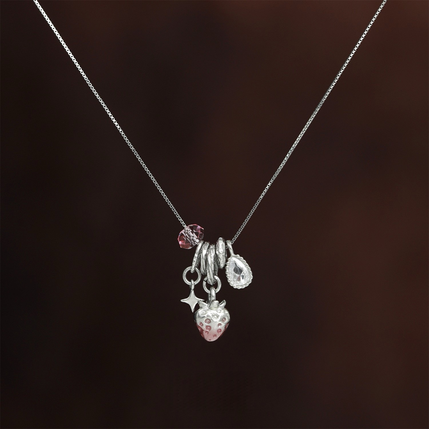 This necklace features a delicate strawberry charm paired with a star and teardrop crystal, all crafted in high-quality 925 sterling silver. The pink gem details catch the light beautifully, adding a soft sparkle that enhances any outfit.